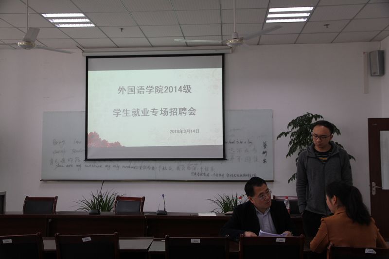 3月14日上午,应我院邀请,重庆市璧山区文博文化培训有限公司和永川清华培训学校分别在格术楼A701和C603举行了2018届毕业生专场招聘会。我院党总支书记颜学金,党政办公室主任王德易,毕业班辅导员张萍以及2018届部分同学参加了此次现场招聘会。