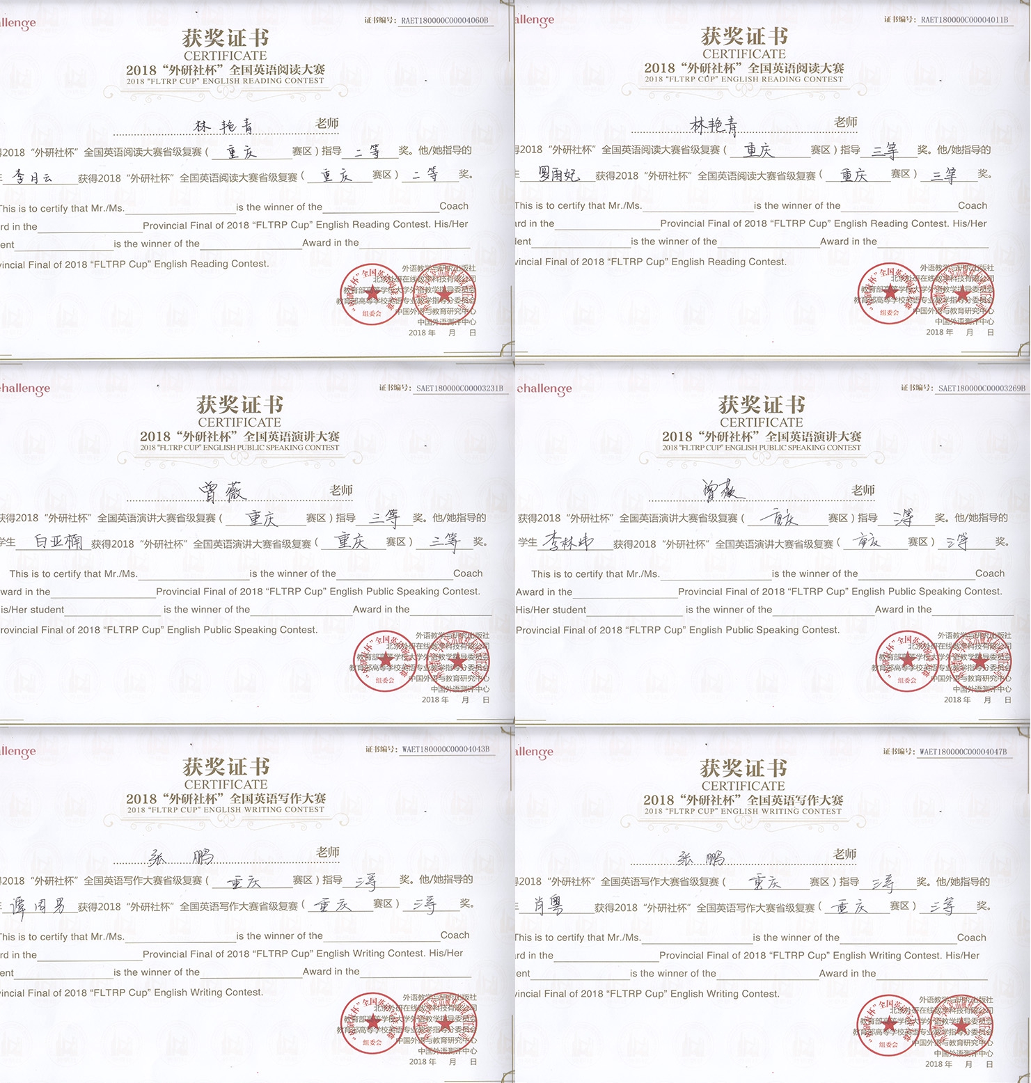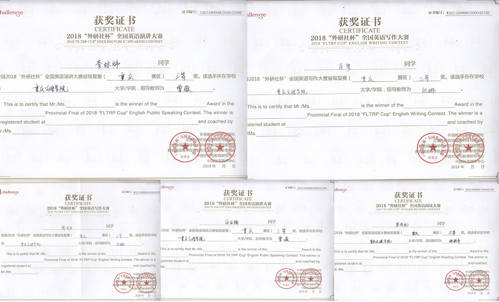 我校学子在2018年“外研社•国才杯”全国英语演讲、写作、阅读大赛 重庆赛区比赛中获佳绩