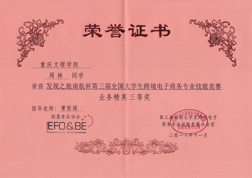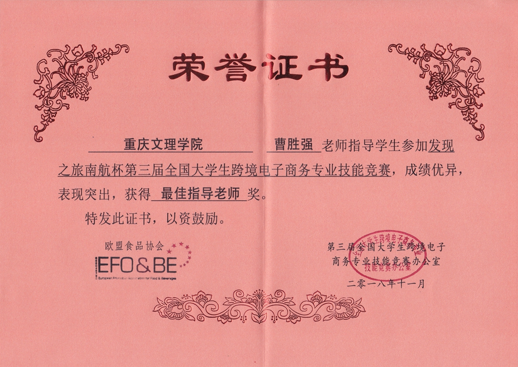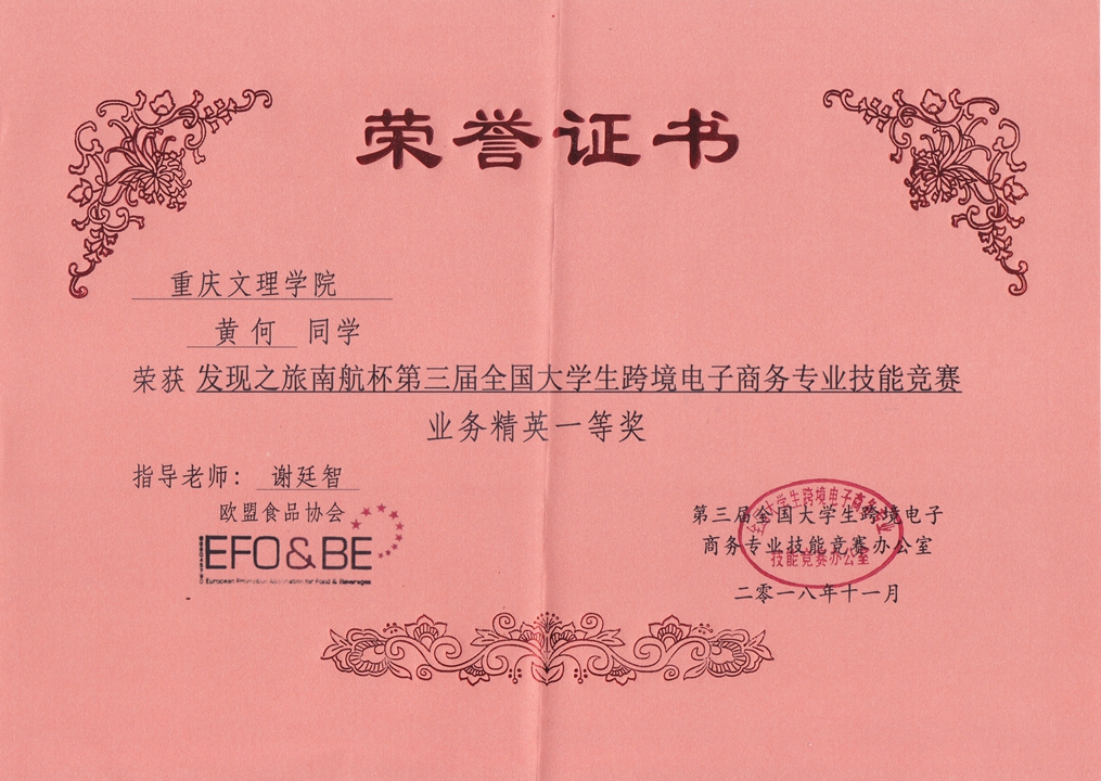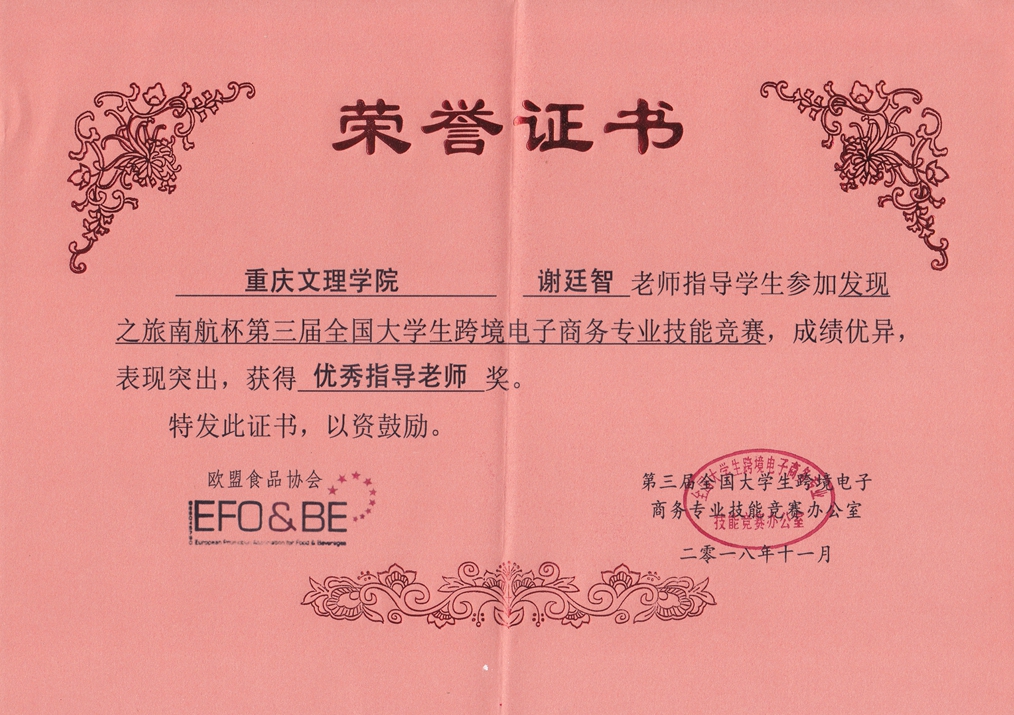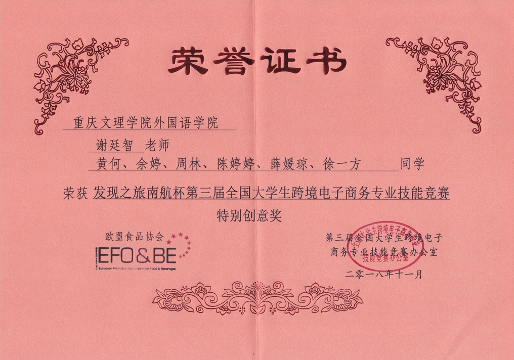 2018年11月16日-17日,2018年发现之旅南航杯第三届全国跨境电商技能大赛决赛在电子科技大学成都学院隆重举行,我院商务英语专业六名学生组成的代表队,在商务英语教研室主任曹胜强及项目负责人谢廷智老师的带领下参加了本次比赛。