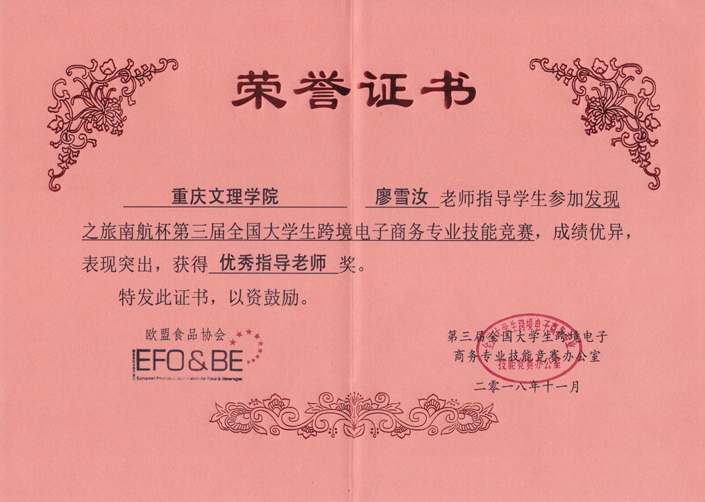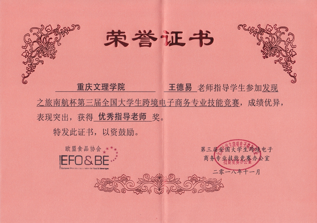 我院学生在2018年发现之旅南航杯第三届全国跨境电商技能大赛中喜获佳绩