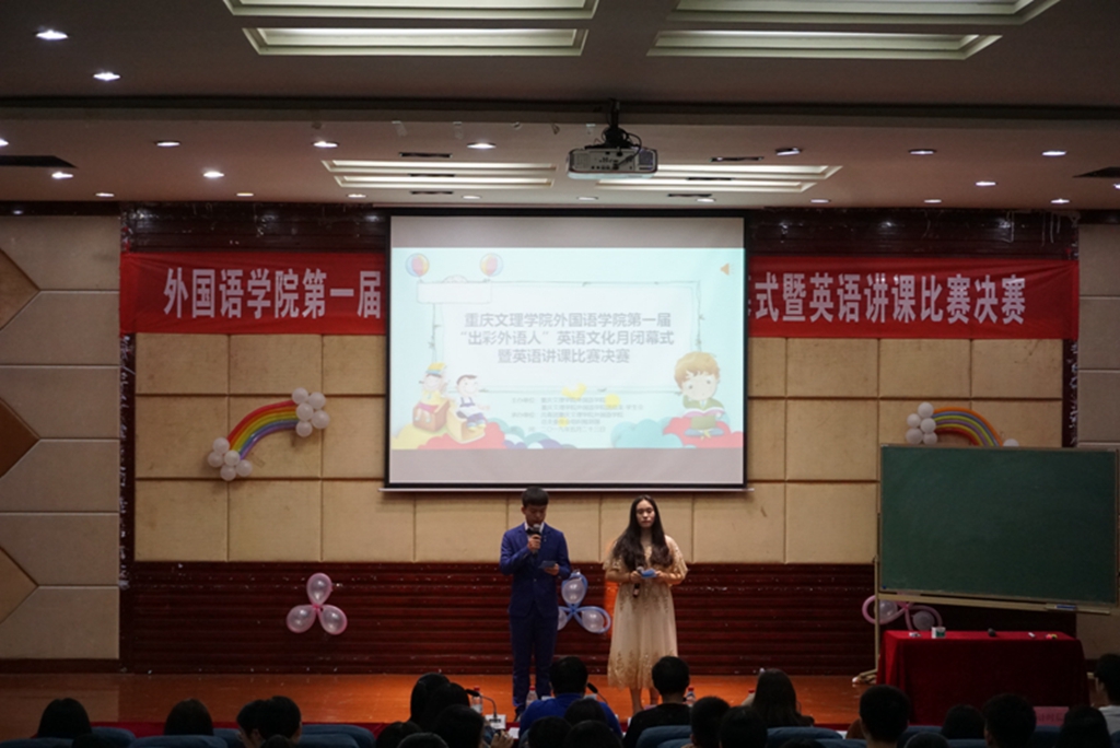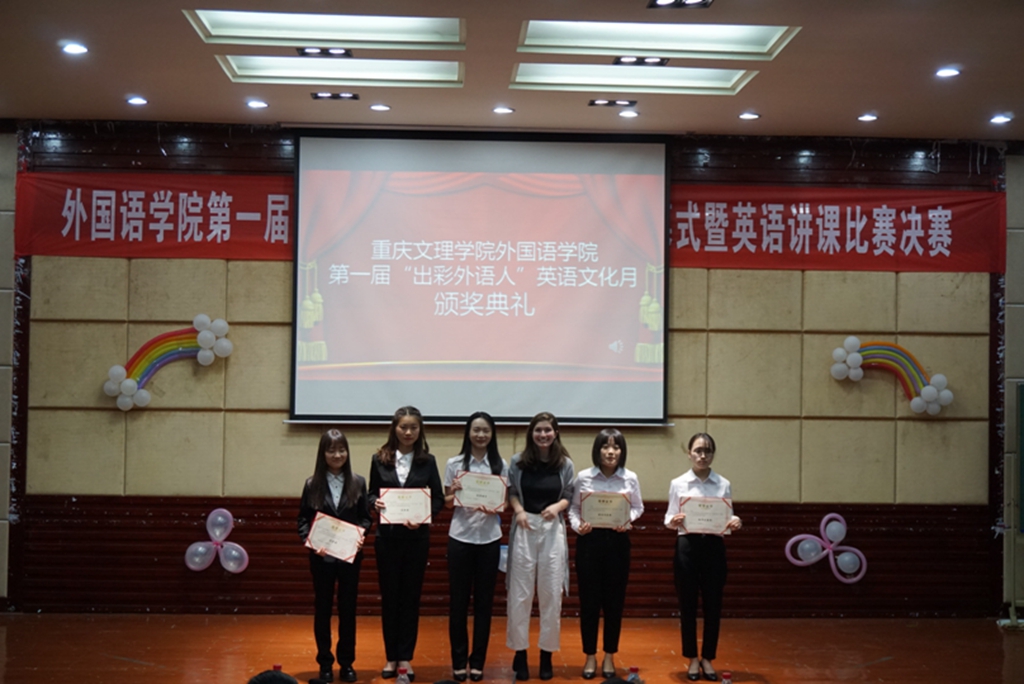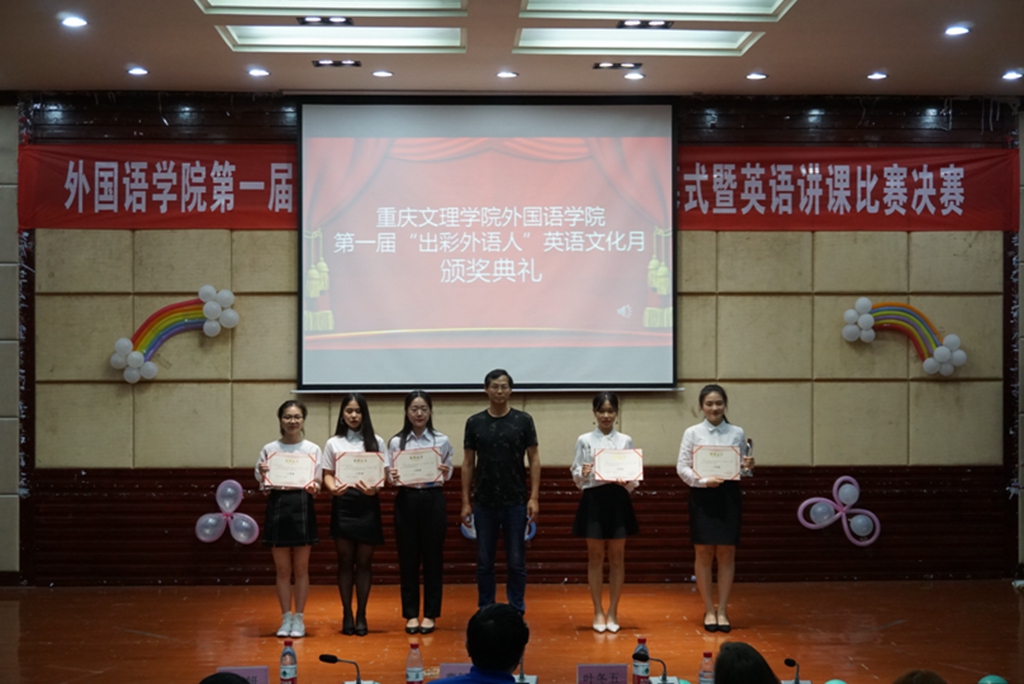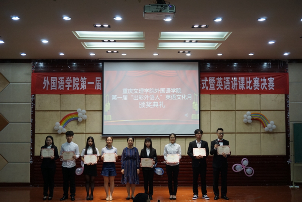 随后举行我院第一届“出彩外语人”英语文化月颁奖典礼。四位评委老师分别为三个子项目即英语新闻大赛、英语辩论赛、英语讲课比的获奖者进行了颁奖。最后,本次活动在我院团总支·学生会文艺活动部带来的精彩英文歌串表演中落下了帷幕。