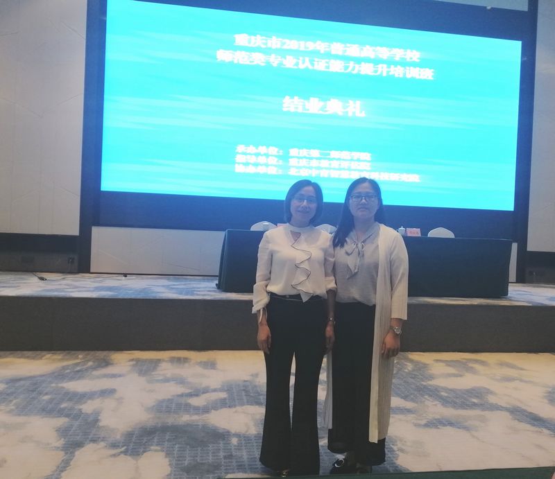 9月16日-21日,重庆市2019年普通高校师范类专业认证能力提升培训班在重庆互联网学院E家酒店举行。本次培训班由重庆第二师范学院承办、重庆市教育评估院指导、北京中育智慧教育科技研究院协办,来自重庆市内16所高校100余名高校领导及教师参会,我院副院长刘俊玲、英语师范教研室主任杜玲应邀参会。