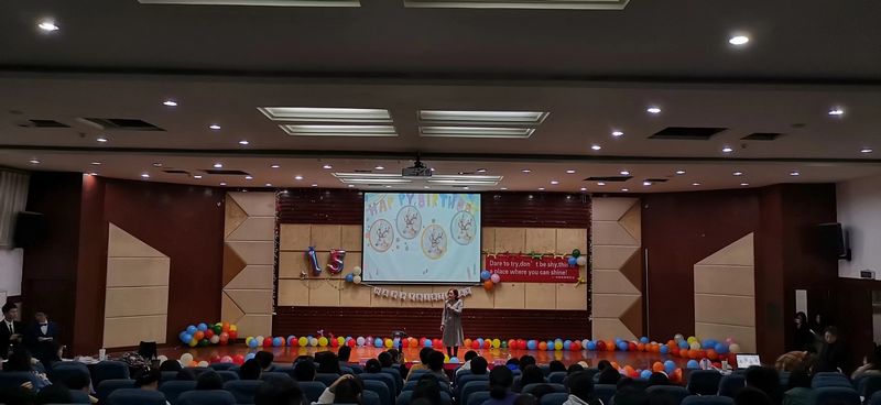 10月25日晚7点,大学生英语协会新老社员见面会暨十五周年庆祝活动在红河A区博文馆101举行。betway西汉姆联党总支书记杜勇、副院长刘俊玲、邹盛瑜老师,外教老师George、Jess,出席了本次见面会。英语协会200余人参与此次见面会。