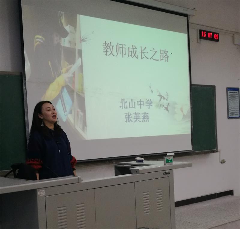 10月21日下午,我院2000级英语教育专业校友、重庆市高中英语学科名师、重庆市优秀班主任、永川区优秀共产党员、永川区黄基云名班主任工作室成员、北山中学英语教师张英燕应邀在知行楼B102教室为我院2020级英语专业学生上了精彩一课。