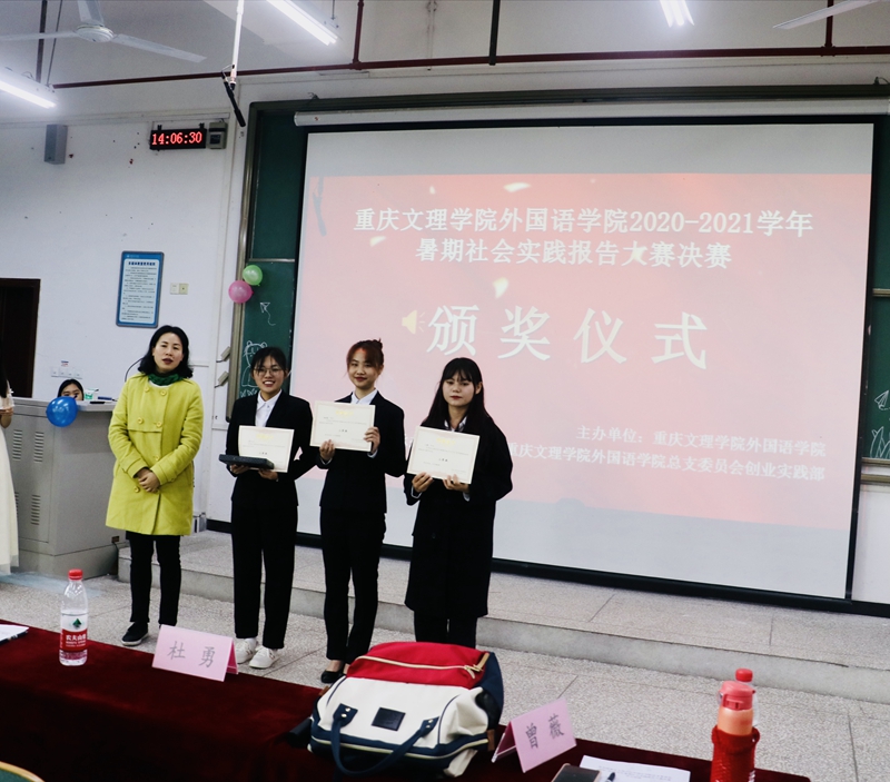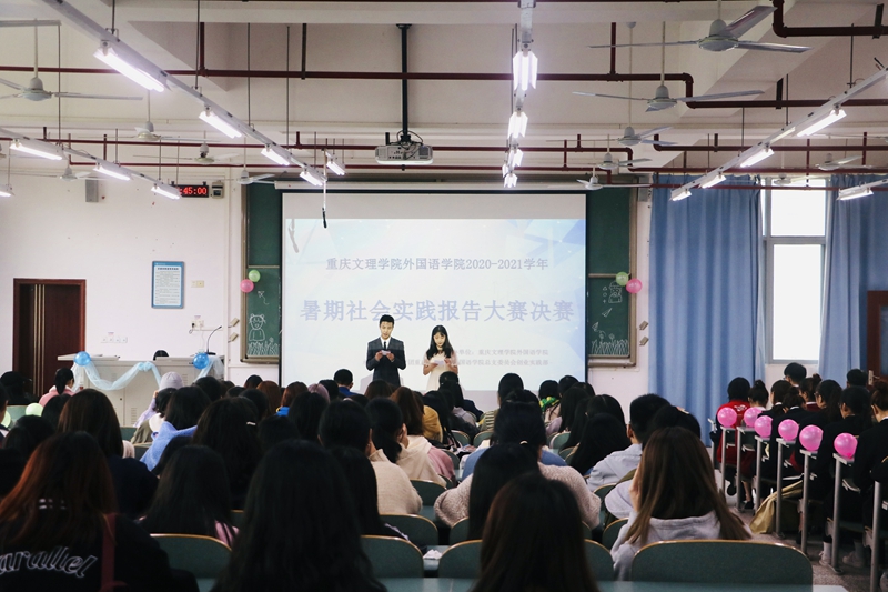 10月28日中午,我院2020年暑期社会实践报告大赛决赛在知行楼B601隆重举行。学院党总支书记杜勇,团总支书记邹盛瑜,曾薇老师、孙淋老师出席比赛并担任此次大赛评委,学院各年级100余名学生代表出席比赛活动。