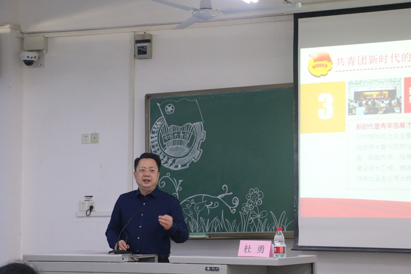 开班仪式结束后,杜书记为本期团校做《如何做一名合格的共青团员》的报告,他告诫大家坚定的共产主义理想和信念,要有优秀的品质和道德,要有扎实的文化基础,要成为学校学生中的楷模,另外,还就中国共产主义青年团的认识、新时代共青团的光荣使命和要求以及怎样做合格的共青团员做了详尽的讲解。