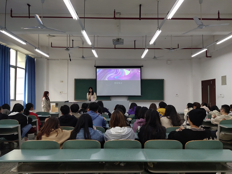 2020年11月20日中午,我院第十六届大学生英语协会第一次全体会议暨干事见面会在重庆文理学院红河B区知行楼A103举行。学院团总支书记、大学生英语协会(以下简称英协)指导老师邹盛瑜、英协社长刘春濂、副社长龚秀清、英协各部门部长副部长以及全体干事50余人参加会议,会议由副社长龚秀清主持。