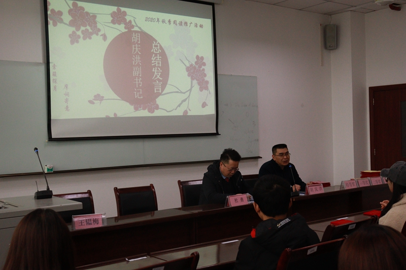 2020年11月27日中午12:50分,我院2020年秋季“索骏探月,摩词寄意”阅读推广活动颁奖典礼暨专业读者座谈会在我院会议室格术楼A701成功举办。