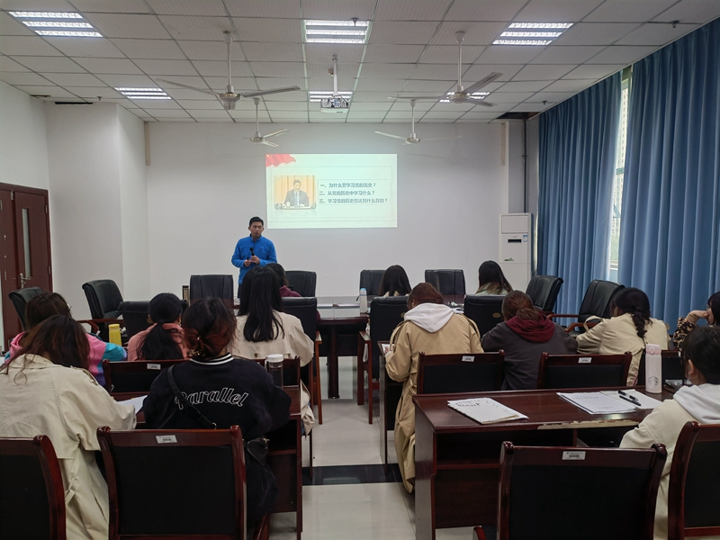 学生支部书记邹盛瑜对中国共产党成立100周年党史进行了解读,生动地举例说明了学习党的历史的重要性,强调了历史对一个民族和国家的重要性,希望大家树立正确的党史观,学史明理、学史增信、学史崇德、学史力行。