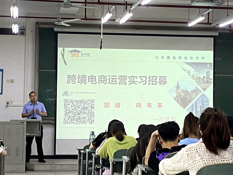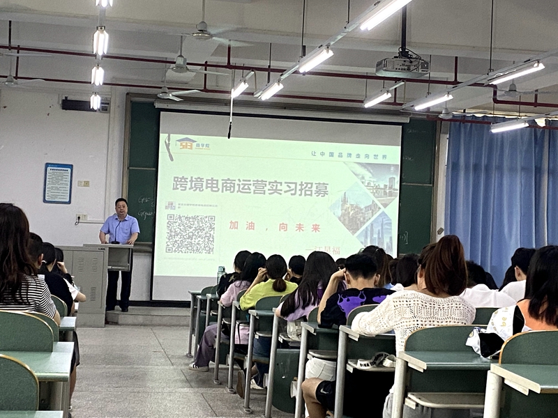 会上杜勇书记对此次实习招募会的目的和要求作了详细的介绍和说明。此次招募的跨境电商运营岗位是精准对接商务英语专业的学生,杜书记殷切希望同学们能够把握好此次机会,做到学以致用,理论与实践相结合。接着深圳深圳市伍壹叁教育集团有限公司代表江星福给同学们分享了跨境电商的发展现状,介绍了公司的实习三个阶段以及报名条件,实习待遇等具体事项。
