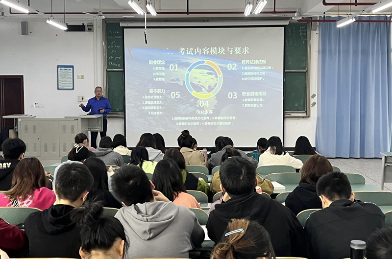 李永平从教师资格证考试大纲解读、考试模块内容和复习备考建议几个方面,结合大量的真题进行了深入浅出的分析,在场学生纷纷表示本次培训收获颇丰,更加明确了考试重难点和复习方法。培训结束后,刘俊玲结合师范生的就业现状,对全体学生提出了明确要求,要求同学们高度重视本次教师资格证考试,厘清复习思路,抓紧时间,认真备考。