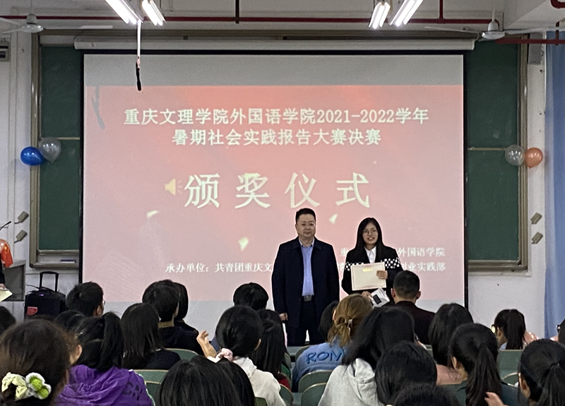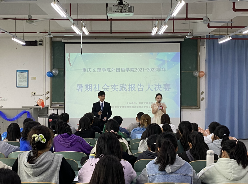 10月25日中午,我院2021-2022学年暑期社会实践报告大赛决赛在知行楼B601成功举行,党总支书记杜勇作为嘉宾出席此次比赛;团总支书记邹盛瑜、赵妍老师、团总支学生副书记邓云霜担任本次比赛评委,刘琪琪、陈京鹏担任主持,学院各年级100余名学生代表现场观看了本次比赛。