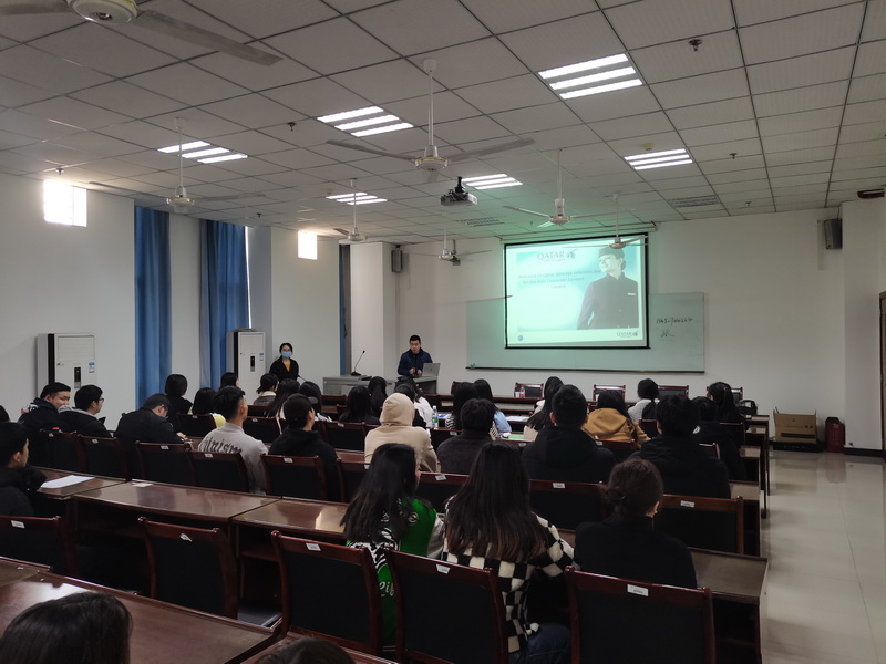 3月3日,卡塔尔航空公司重庆办事处蒋川总经理、人力资源负责人等一行6人到我院举行了专场招聘会。学院总支书记杜勇、学工办主任邹盛瑜、毕业班辅导员、2018级毕业生80余人参加了招聘会。