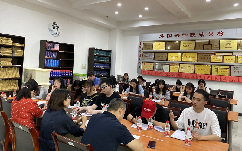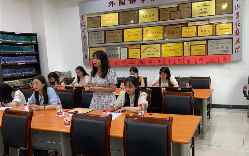 6月9日下午,我院在格术楼C701召开了2022届毕业生代表座谈会。教学办主任张鹏、英语师范教研室主任杜玲、图书资料室管理员王韫梅、各专业毕业生代表共计20余人参加了座谈会。会议由我院副院长刘俊玲主持。