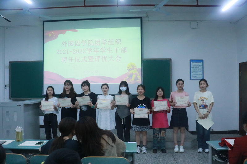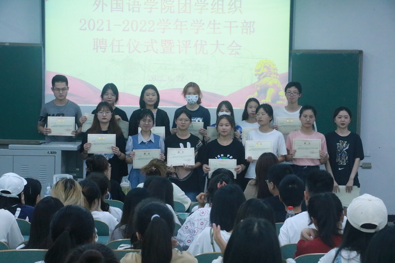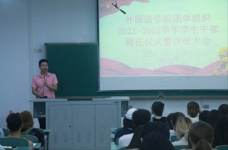 6月22日中午,betway西汉姆联团学组织2021-2022学年学生干部聘任仪式暨评优大会于知行楼A104举行,本次会议由刘琪琪主持,团总支书记邹盛瑜、团学组织100余名成员参加此次会议。