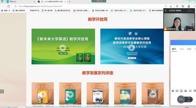 2022年9月21日,我院第二外语教研室组织全体教师回看和研讨了2022年暑期全国高校外语教学与教师发展系列研修内容。活动由第二外语教研室主任瞿倩倩主持。