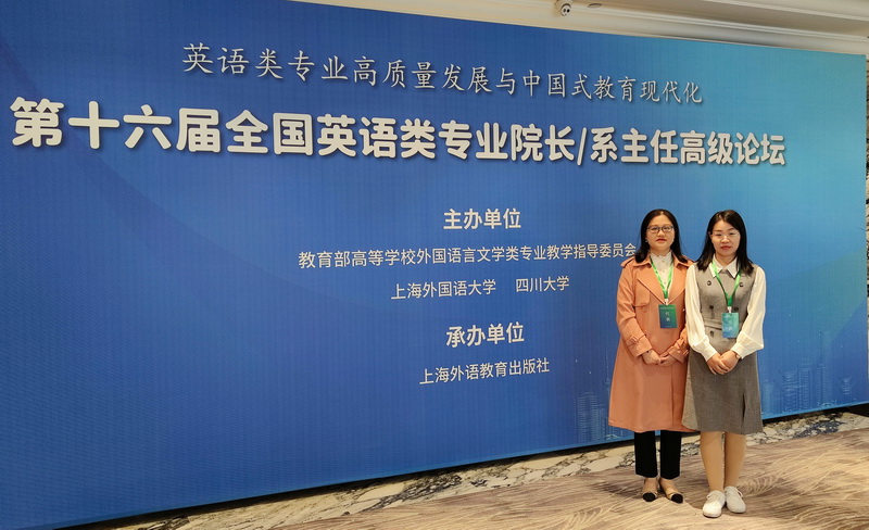 4月6-8日,由教育部高等学校外国语言文学类专业教学指导委员会、上海外国语大学和四川大学主办,上海外语教育出版社承办的“第十六届全国英语类专业院长/系主任高级论坛”在四川省成都市举行。来自全国高校的大学英语院长、系主任和骨干教师共计700余人参会,我院英语教研室主任杜玲和专任教师林艳青应邀参加。