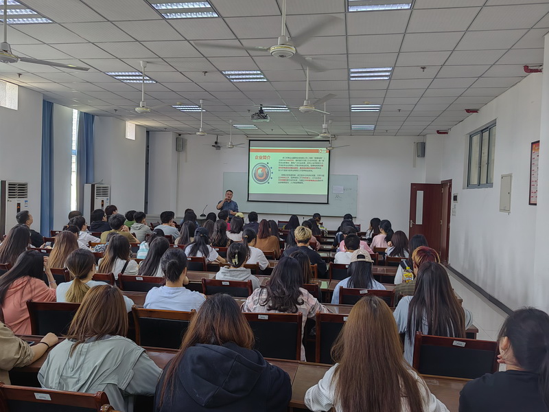 会上,金阳华就公司基本情况、电商行业趋势、大学生就业尤其是商务英语专业学生就业、薪资待遇等做了详细的讲解。提问环节,金阳华就大家关心的吃住等问题进行了耐心解答。