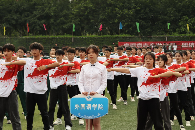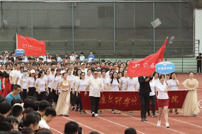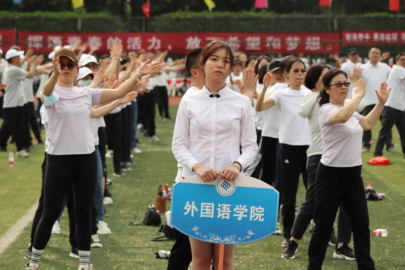 2023年4月12日,重庆文理学院第二十二届运动会开幕式暨教职工运动会如期举行。在灿烂的阳光下,热烈的气氛中,外院师生眼神坚定,步伐从容地走向主席台,眉宇间透露出必胜的自信,展现着外院师生的昂扬斗志和青春活力。一曲《万疆》表达了外院学子对祖国的赞美及祝福,古典音乐与现代舞蹈的碰撞也展现了外院学子独特的风采与魅力。“同心二十大,奋进新征程,学好外国语,做好中国人”,响亮的口号喊出了外院人踔厉奋发、勇毅前行的信心及决心。