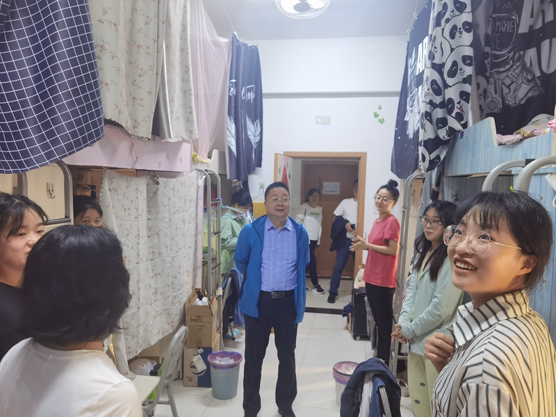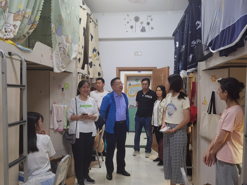 为推动学习贯彻习近平新时代中国特色社会主义思想主题教育抓深做实,践行调查研究之风,了解学生的思想动态和学习生活情况,着力解决学生“急难愁盼”问题。6.3——6.4日晚,学院总支书记杜勇带领辅导员一行前往B区李苑、桃苑寝室开展走访活动。