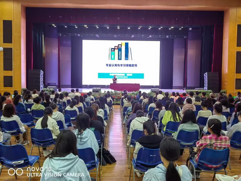 会上,胡庆洪就商务英语专业的人才培养方案进行了深入的解读,对学籍管理规定进行了细致的说明;刘俊玲以大量的事例分享,从专业认知和学习策略的角度对英语(师范)专业、俄语专业的人才培养方案进行了全面的讲解,鼓励大家热爱专业,积极参加学科竞赛,全方位提升自身能力;邹盛瑜从角色转变、能力提升、目标实现三个方面讲解了第二素质课堂学分的相关规定,勉励同学们早日融入大学生活,实现人生价值。