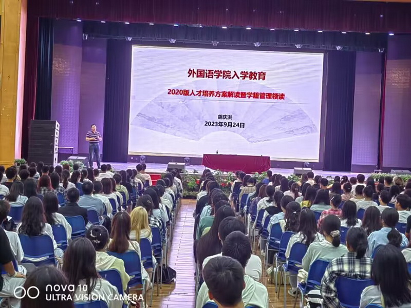2023年 9月24日下午,我院在星湖校区活动中心四楼举行新生入学教育。入学教育由学院副院长胡庆洪、刘俊玲主讲,学工办主任邹盛瑜主持,2023级200余名新生参加入学教育。
