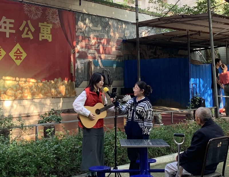 下午两点半,我院青年志愿者到达“夕阳之家老年公寓”,他们身着红色马甲给老人们分发礼品,了解他们的身体状况和生活情况,帮助他们打扫清洁卫生,为他们修指甲,现场欢笑声此起彼伏。随后,志愿者们带来了唱歌、跳舞、乐器演奏、朗诵等节目,给他们送去了一场视觉盛宴,丰富了老人们的精神文化生活。