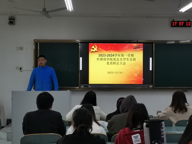 12月6日下午,我院党总支学生支部在知行楼A206召开党员转正大会。会议由支部书记邹盛瑜主持。