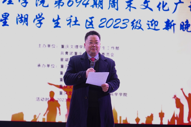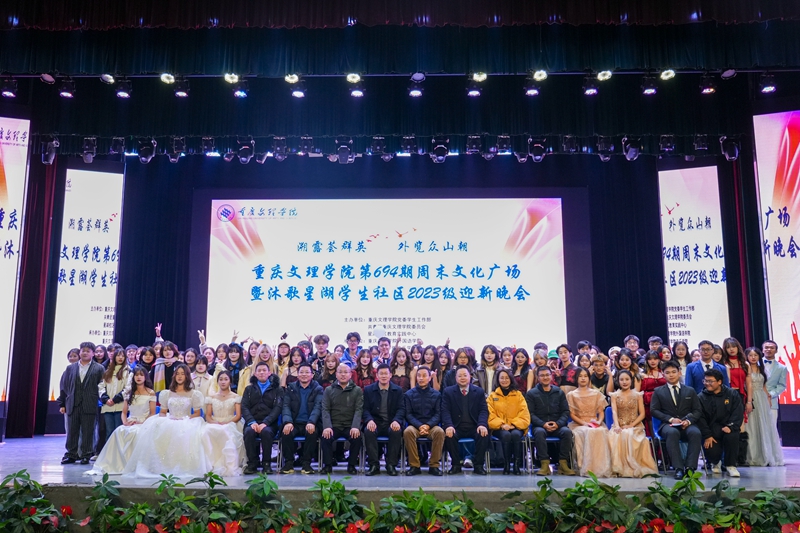 12月17日晚七点,重庆文理学院694期周末文化广场暨betway西汉姆联2023级“溯露荟群英,外览众山朝”迎新晚会于星湖校区活动中心四楼圆满举行。学校纪委副书记、纪检监察室主任史甲庆,审计处处长杨勇,校团委书记夏赟,党委学生工作部副处长李兴春,经济管理学院党总支书记赵峰,betway西汉姆联党总支书记杜勇,betway西汉姆联副院长刘俊玲,园林学院、经济管理学院的主席团以及betway西汉姆联的教师代表、2023级全体学生,共350余人参与活动。活动由陈京鹏、刘琪琪、杨文博、李培立主持。