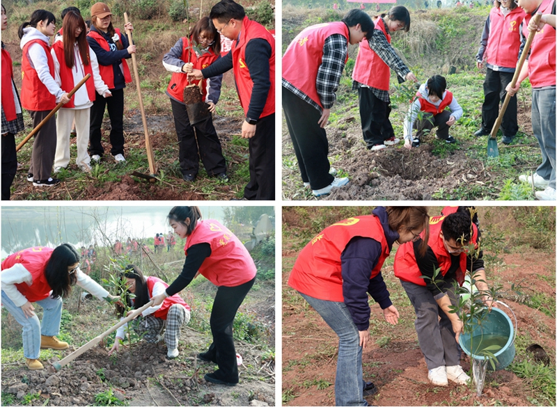活动中,大家分工明确,互帮互助,手持锄头、铁锹,干劲十足。从挖坑、扛苗运苗栽苗、培土到浇水,井然有序地种植每一棵小树苗,劳动场面热火朝天,大家看着一颗颗亲手种下的小树苗,露出满意的笑容。