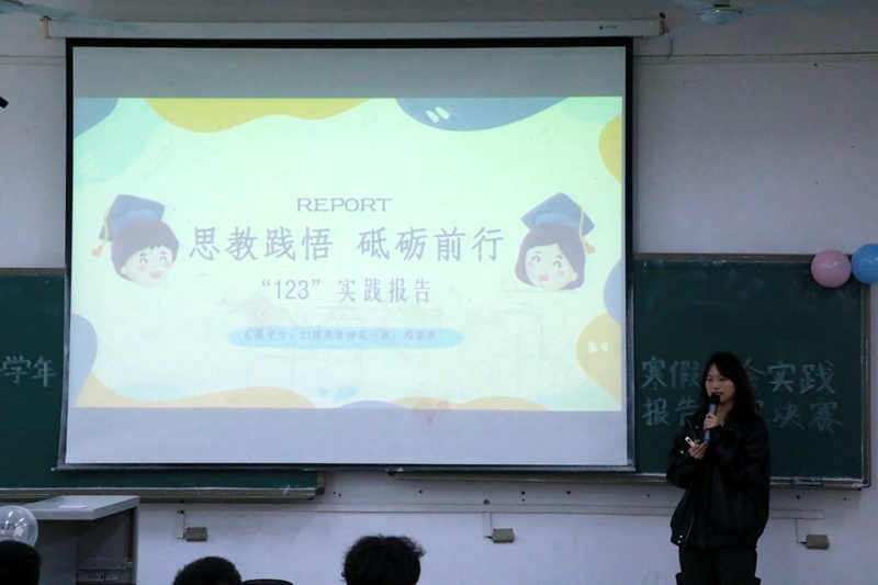 邹盛瑜对大赛进行了点评和总结。他指出,此次比赛选手们准备充分,选材丰富,紧跟时代发展主题,为广大同学开展社会实践树立了榜样,提供了经验。希望大家在今后更加积极参与社会实践,增强实践能力,提升服务社会本领。