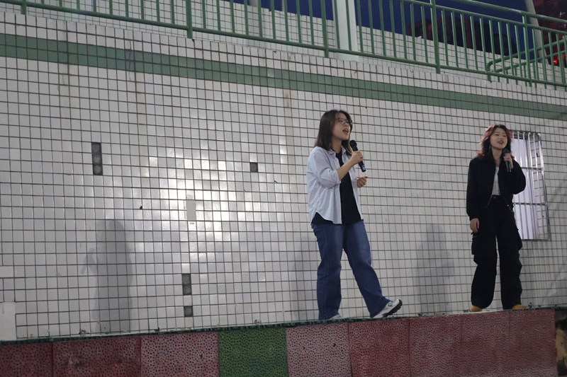 活动开始,由青年“健身达人”结合当下大学生喜爱的歌曲创编健身操,进行“坝坝舞”教学,将学习内容进行分步讲解,在轻松欢快的氛围中锻炼身体、愉悦身心,同学们跟随领舞人员一同感受“坝坝舞”的魅力。随着活动的逐渐推进,街舞表演《stepback》、《better up》将现场氛围推向高潮。