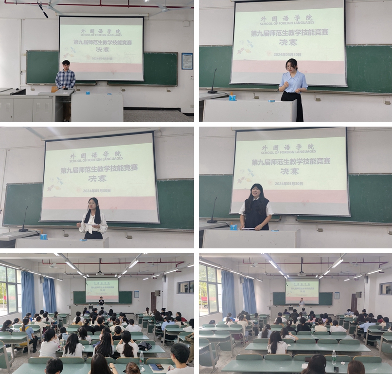 5月22日下午,我院第九届师范生教学技能竞赛初赛在知行楼A203、A205、A207举行。经过试讲指导教师推荐、学生自荐,来自2021级英语(师范)专业1-3班的30余名同学为初赛呈现了精彩纷呈的英语课堂。5月30日下午,我院第九届师范生教学技能竞赛复赛在知行A104举行。进入复赛的9名同学,根据现场抽取的教学材料,呈现了关于教学理念、教学设计、教学方法、教学评价等的精彩讲课。我院林艳青、吴旭、陈虹樾担任了本次比赛的评委。2021级英语(师范)专业全体学生到场观摩了比赛。