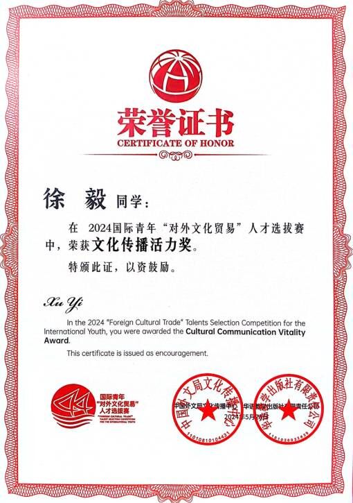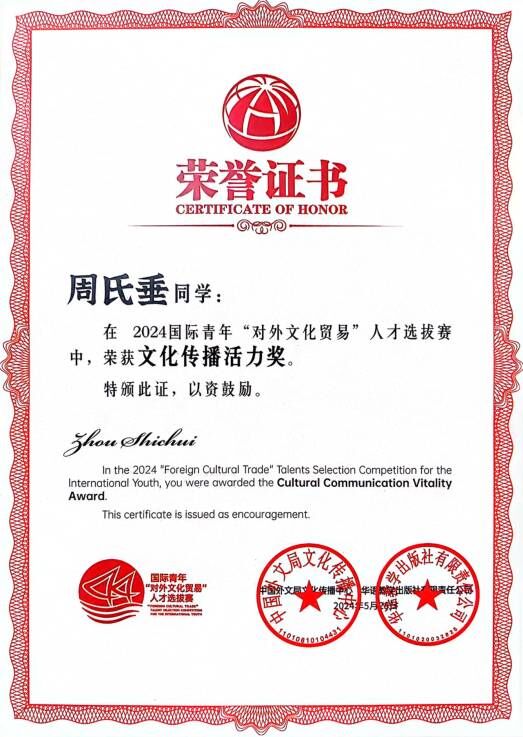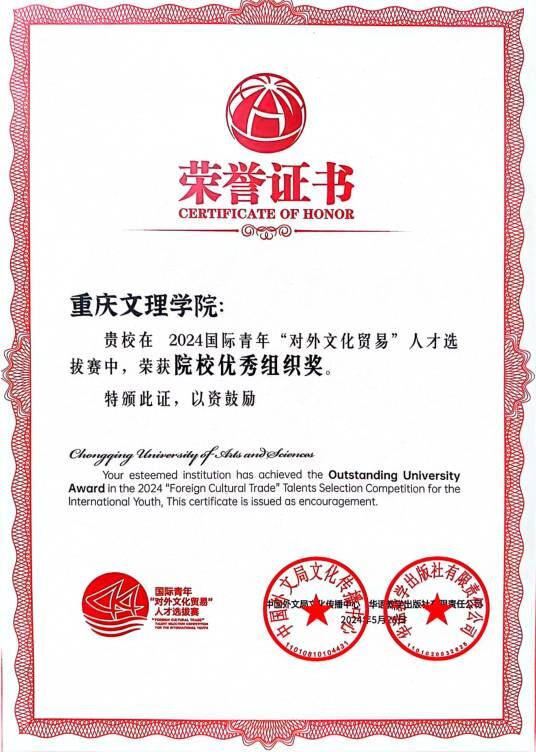 我校越南籍留学生CHU THI THUY参赛作品《山城印象》、乌兹别克斯坦籍留学生ABDUKHALILOV SHAKHBOZ参赛作品《智能驾驶之旅》成功晋级全国总决赛喜获“文化传播活力奖”,指导教师姜晓涵荣获“优秀指导教师”。我校获得“院校优秀组织奖”。