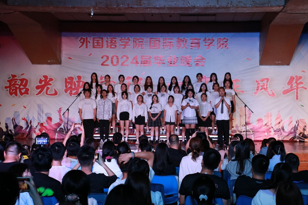 晚会在舞蹈《Armageddon》中拉开序幕,毕业生徐豪骏、易丹丹的歌曲《如果可以》迅速将同学们带入大学时光的回味和留恋,俄罗斯、老挝、印尼、蒙古等国留学生朗诵的《读中国》抒发了对中国历史和文化的敬意和热爱。随着一曲《最后一页》,晚会进入高潮,毕业生用歌声诉说了离别的感慨与希冀,用旋律来铭记青春的回忆。教师代表覃海晶发言时回忆了与同学们相处的点点滴滴,从课堂到操场,从理论到赛场,她祝福毕业生在人生新的征程上再创佳绩,再续辉煌。接下来的舞蹈《Sexy back》&《我最红》,歌曲《水面上的影子》、《瘦子》、《玫瑰人生》,合唱《凤凰花开的路口》既展现了当代大学生的激情与活力,又表达了毕业生对大学时光回忆与惜别,以及对未来的无限憧憬和期望之情。
