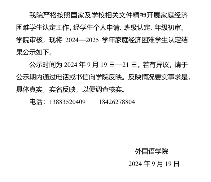 betway西汉姆联2024—2025学年家庭经济困难学生认定结果公示