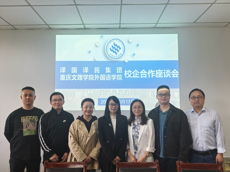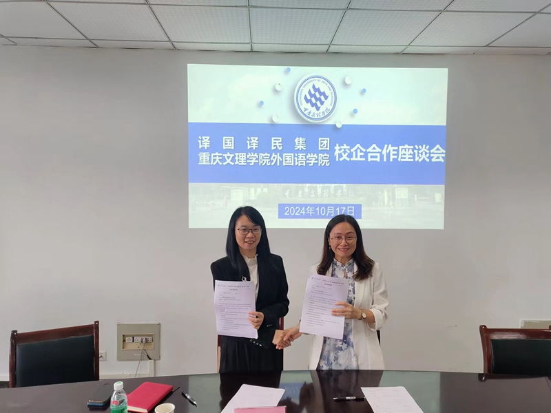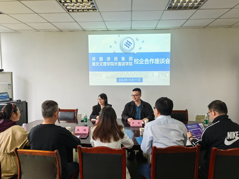 译国译民集团西部公司总经理吴强介绍了译国译民集团的发展历程与规划,重点介绍了翻译师资培训、学生实习实训项目的合作模式及典型案例。之后,双方就校企合作、师资培养、专业课程建设改革等内容进行了深入交流。会后,双方就教学实践实习基地建设等合作内容签订了校企合作协议。
