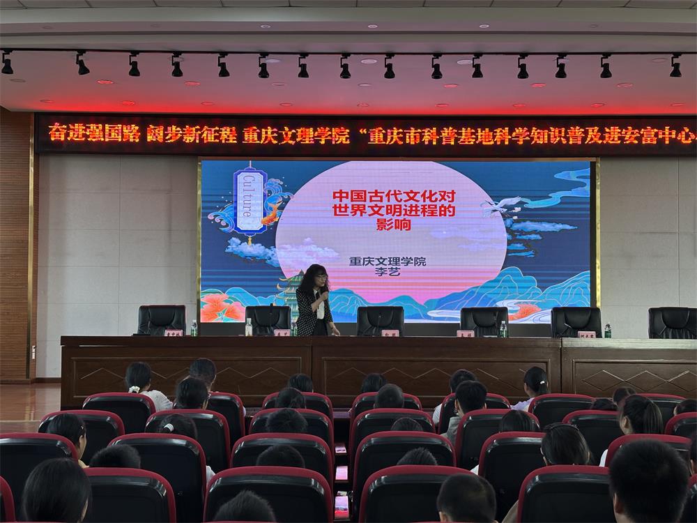 活动当天,在荣昌区少年宫举行见面会及重庆文理学院“耕读教育基地”授牌仪式。见面会后,李艺、陈晶等党员教师分别前往荣昌区棠城小学、棠香小学、安富中心小学、荣隆镇中心小学开展文化科普活动,讲座内容丰富,包括中国古代文化对世界文明进程的影响、人工智能在生活中的运用、大自然的奥秘、科技发明过程和方法等。