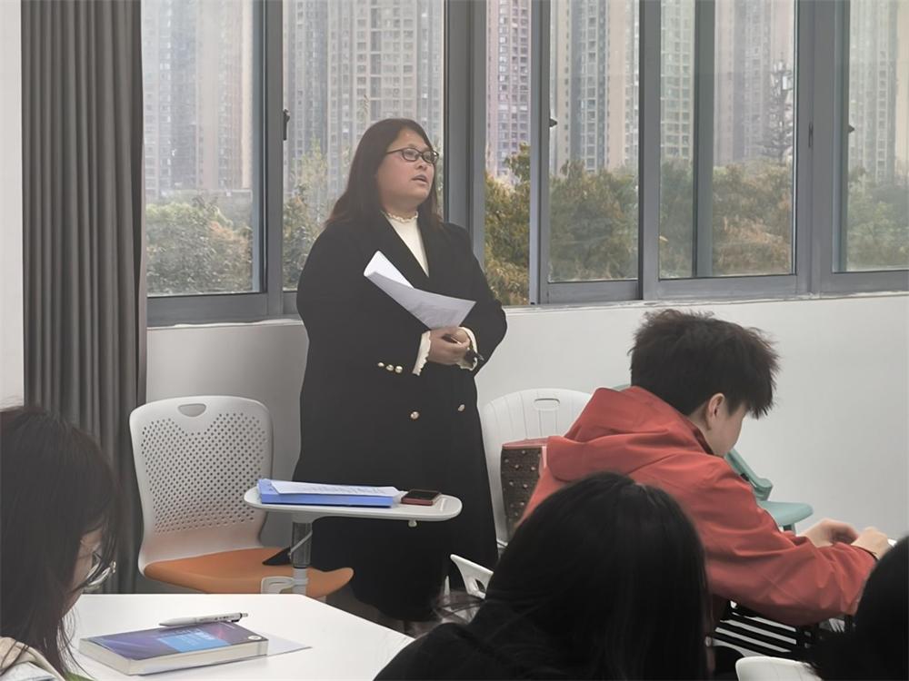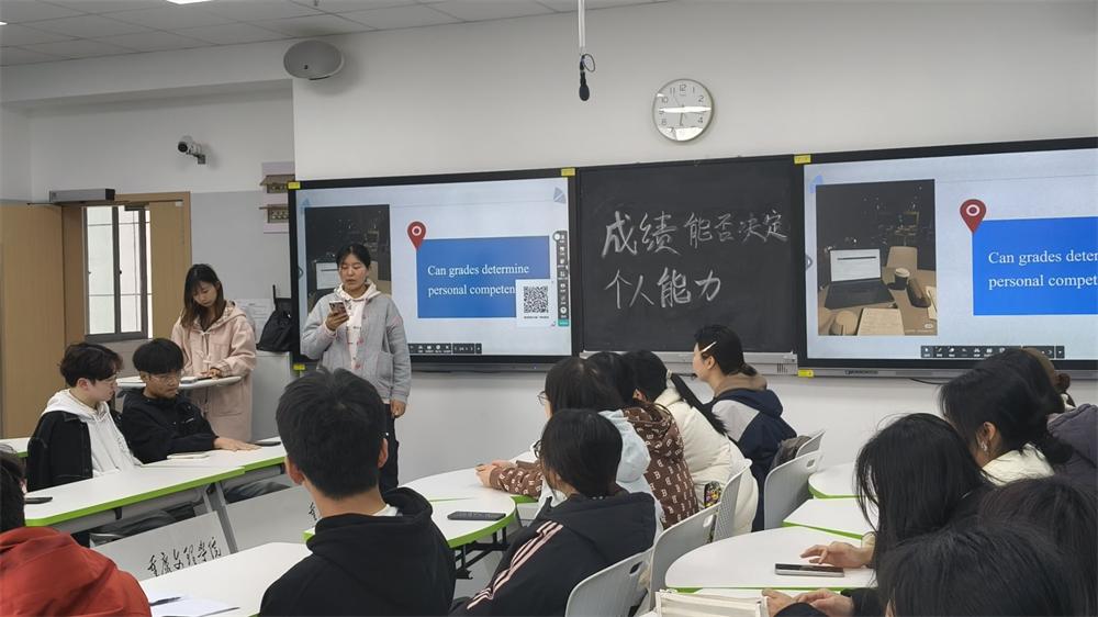 本次活动采用辩论形式,围绕“成绩是否可以决定个人成就”主题,用英语为载体进行辩论。参与学生各抒己见,观点纷呈。辩论结束后,杨金梅对选手的积极参与和精彩表现给予了肯定,并对同学们在英语语音语调的准确性、语言的连贯性和流畅性等方面的改进进行了指导。