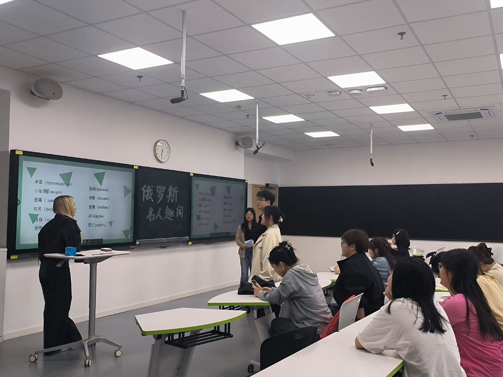 本次活动以“俄罗斯名人趣闻”为主题,介绍了俄罗斯生理学家巴甫洛夫在其研究领域的成就和杰出贡献,介绍中,主持人对“科学家”“生理学”“实验”等俄语单词进行了重点讲解。既让参与的同学了解名人事迹,又增进了对俄罗斯文化的了解、强化了俄语口语训练。