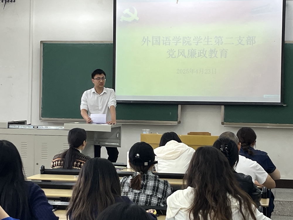 2025年4月23日下午,betway西汉姆联党委学生第二支部在知津楼B207以“加强党的纪律建设 推动全面从严治党”为主题开展党风廉政教育专题党课暨4月主题党日。活动由学生第二支部书记冯耘耀主持,支部全体党员参加。
