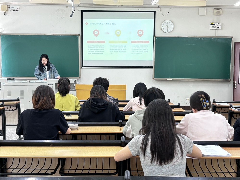 会上,张璐瑶、杨停、邓陈坤三名党员分别领学了《十八届中央政治局关于改进工作作风、密切联系群众的八项规定》《中共中央政治局贯彻落实中央八项规定实施细则》、习近平总书记在二十届中央纪委四次全会上发表的重要讲话精神以及二十届中央纪委四次全会公报。三位党员在领学过程中结合自身学习体会,分享了学习中的思考和感悟,增强了与会党员对相关政策精神的认识与理解。随后,与会党员积极发言,围绕学习内容展开了热烈讨论。大家一致表示,要深入贯彻落实中央八项规定精神,始终坚持求真务实、清正廉洁的工作作风,在日常学习和生活中切实做到自警自省、自律自强,发挥党员先锋模范作用。