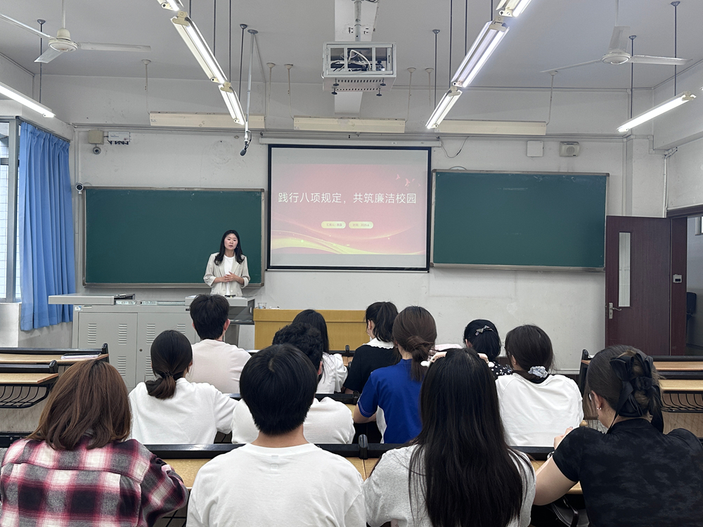 陈晶以“践行八项规定,共筑廉洁校园”为题,为支部党员讲授党课,阐述了廉洁自律对于党员个人成长与校园风气建设的重要意义,要求党员始终以八项规定为行动准绳,将廉洁意识内化于心、外化于行。