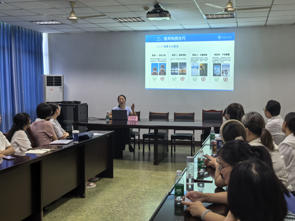 为提升我院宣传队伍新闻摄影能力建设,7月2日,学院党委在知津楼C403会议室举行新闻摄影能力提升专题培训,特邀学校党委宣传部许菲菲老师授课。学院各办公室人员、全体支委委员、系主任等20余名宣传骨干参加了培训。