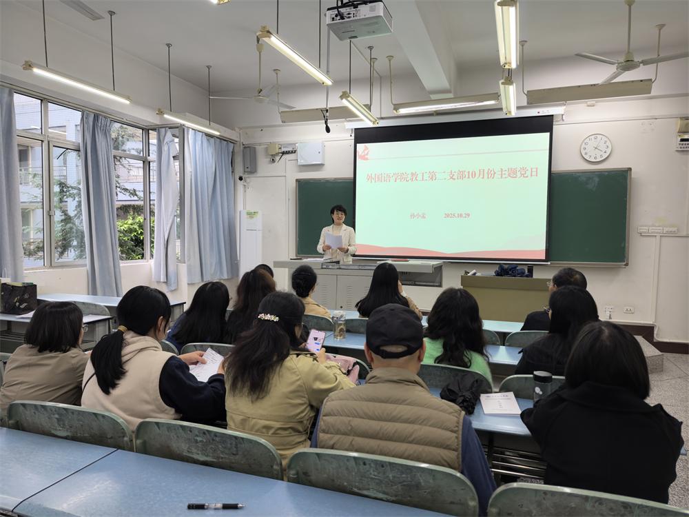 10月29日下午,院党委教工第二支部在知津楼B414开展主题党日。主题党日由支部书记孙小孟主持,支部全体党员参加了学习活动。