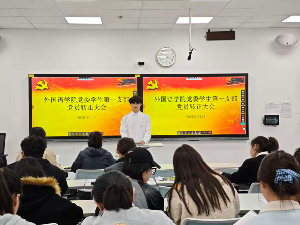 2025年11月22日下午,betway西汉姆联党委学生第一支部党员转正大会在知津楼D402教室顺利召开。大会由支部书记陈晶主持,支部全体党员及相关发展对象参加。